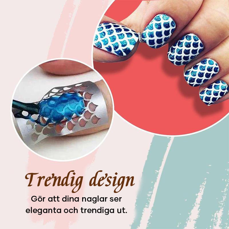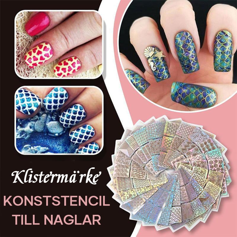- De skalade stencilerna lämnar också holografiska klistermärken som du enkelt kan applicera på dina naglar för mer kreativa nagellooks.