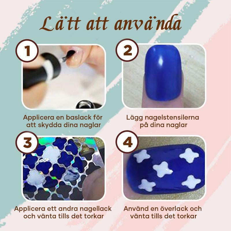 - Stencil -On Art - Hjälper dig att enkelt skapa vackra mönsterdesigner på dina naglar med perfekt rena detaljer.