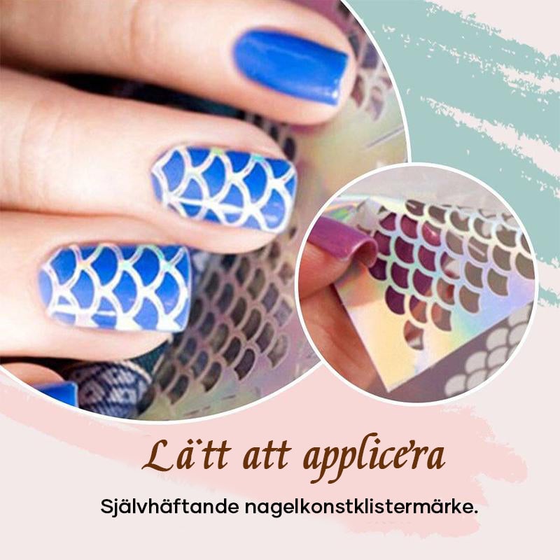 - Holo -klistermärken - Skalade stenciler lämnar charmiga holografiska klistermärken som du enkelt kan applicera på dina naglar.