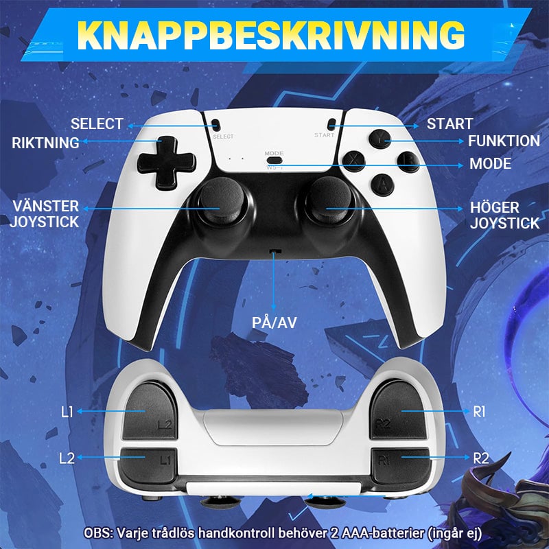 Två 2.4GHz trådlösa kontroller: Inkluderar två uppgraderade trådlösa 2.4GHz-handkontroller med räckvidd upp till 12 meter. Upplev responsivt spel utan fördröjning och utan kabeltrassel.