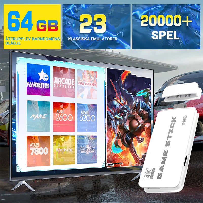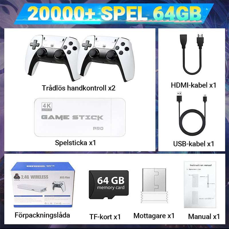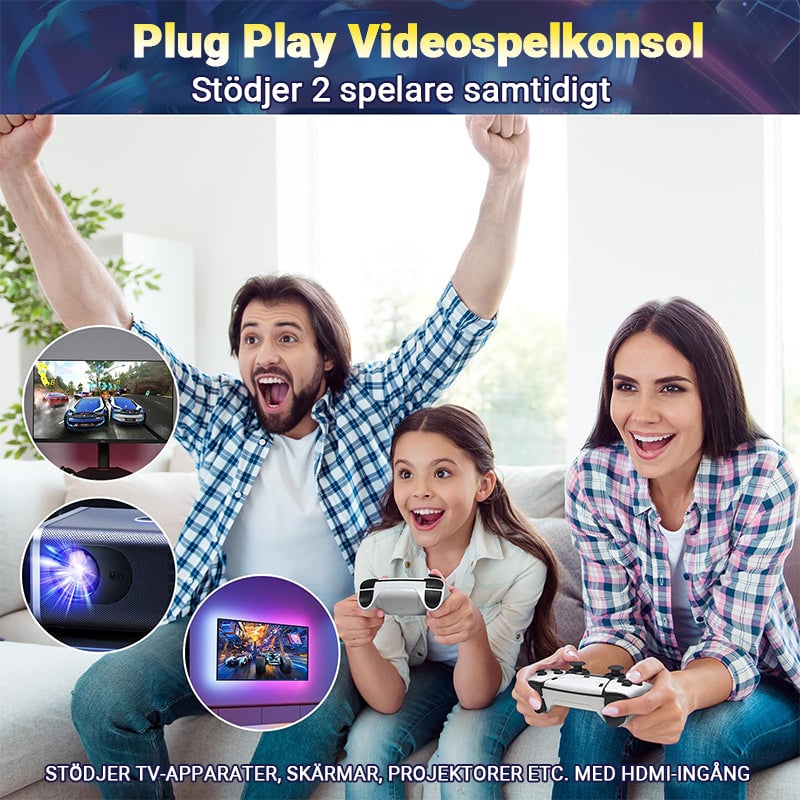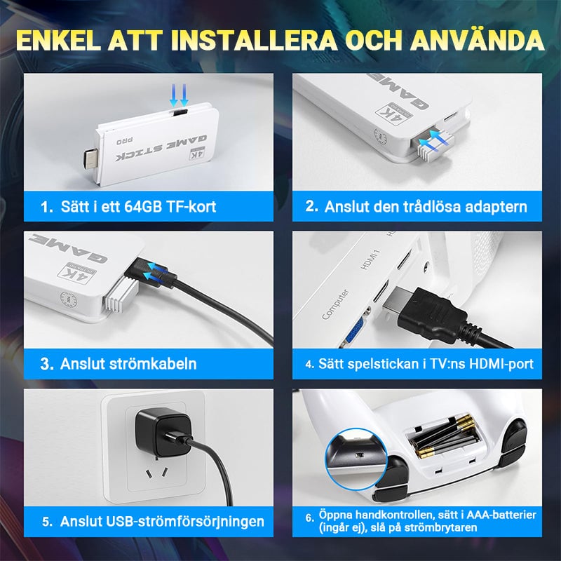 Enkelt Plug & Play: Anslut konsolen till din TV:s HDMI-port, sätt in TF-kortet, starta den och du är redo att spela. Ingen komplicerad installation krävs. (Kontrollerna kräver 4 AA-batterier, ingår ej.)