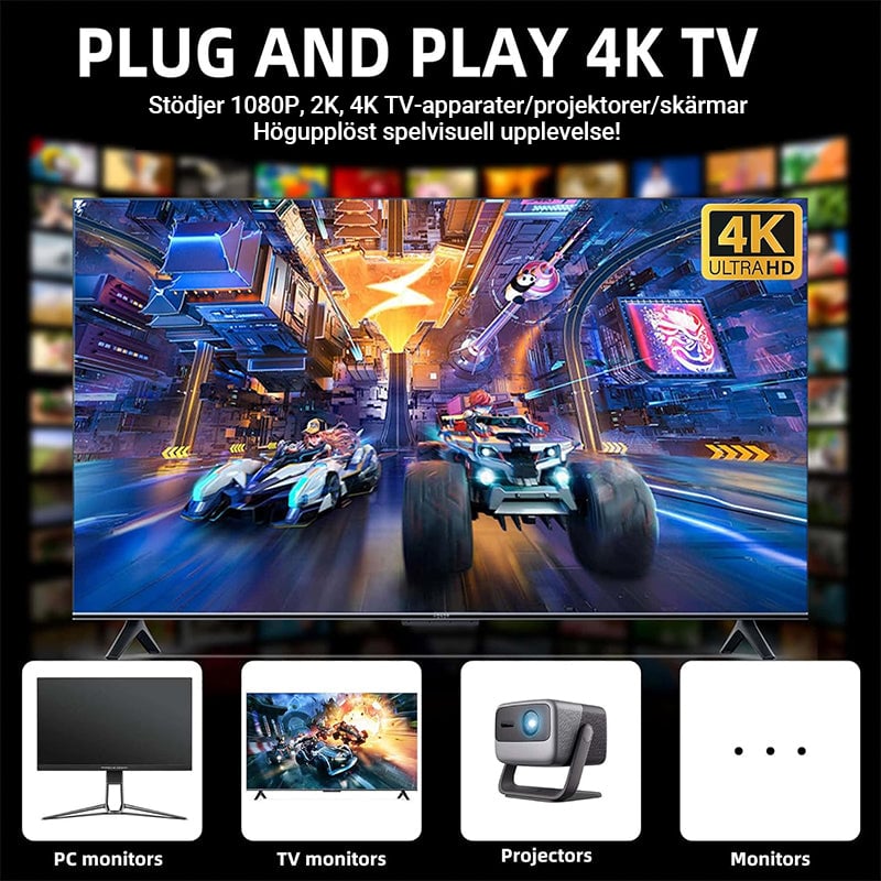 4K HDMI-utgång: Stöder 1080P HD-display via en 4K HDMI-anslutning. Inkluderar en förlängd HDMI-kabel, kompatibel med TV-apparater, bildskärmar och projektorer. Njut av skarpa bilder och jämnt spelande.